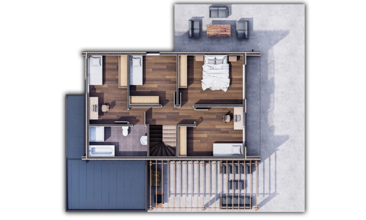 i funkcjonalny projekt, idealny dla rodzin szukających komfortowego miejsca do życia. Wnętrze domu obejmuje trzy jasne i przytulne sypialnie, które zapewniają intymność i wygodę dla każdego członka rodziny.