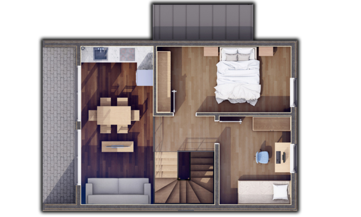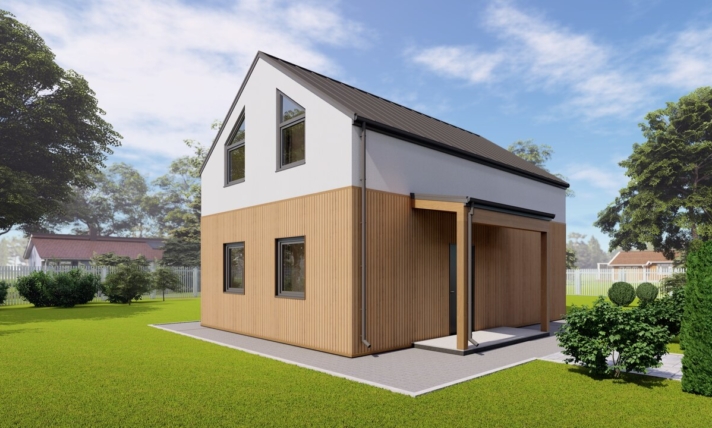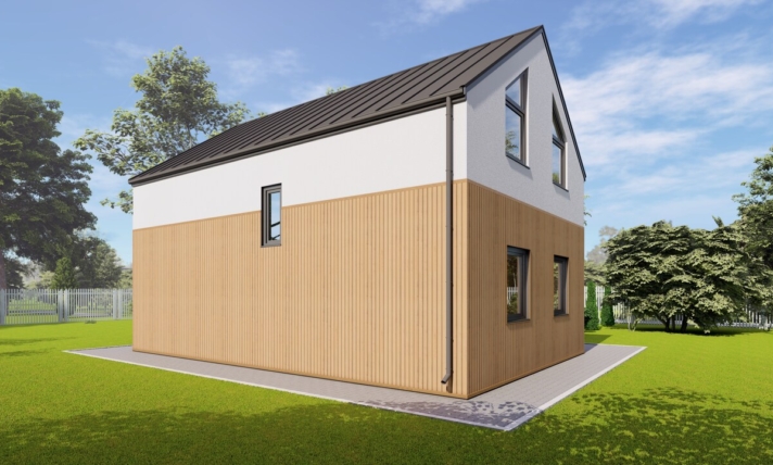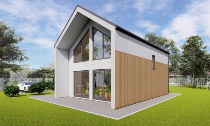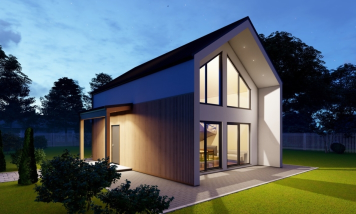3Alto Soffito to nowoczesny dom o powierzchni 85,82 m², wyróżniający się funkcjonalnym układem wnętrz i wyjątkowym charakterem dzięki antresoli. Projekt został stworzony z myślą o rodzinach ceniących przestrzeń, komfort i estetykę.