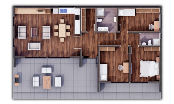 3Dom parterowy Alto Tendenza o powierzchni 126 m² to idealne rozwiązanie dla rodzin ceniących przestronność i nowoczesny design. Wnętrze domu składa się z trzech przytulnych sypialni, które zapewniają komfortowy wypoczynek. Przestronny salon, połączony z kuchnią, tworzy otwartą przestrzeń sprzyjającą wspólnemu spędzaniu czasu oraz przyjemnym posiłkom.