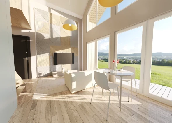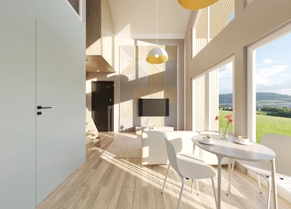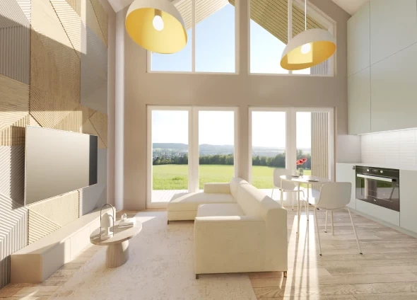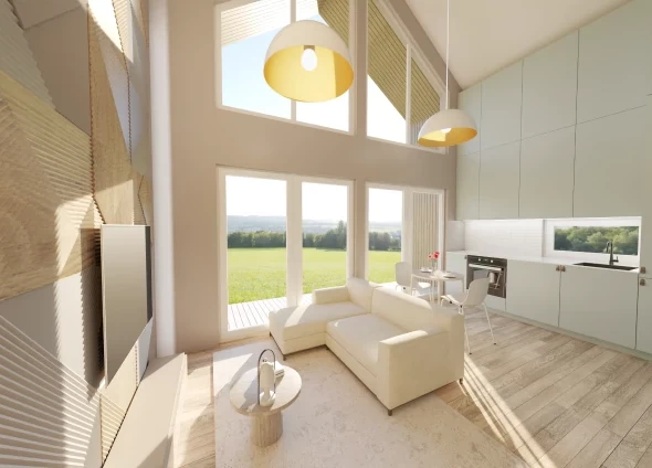 Z niesymetrycznym układem okien, pięknie doświetlonymi przestrzeniami, czterema sypialniami i przestronnym salonem z aneksem kuchennym i wyjściem na taras, ten dom o powierzchni 67.2 metrów kwadratowych zapewni idealne warunki do życia dla Ciebie i Twojej rodziny.