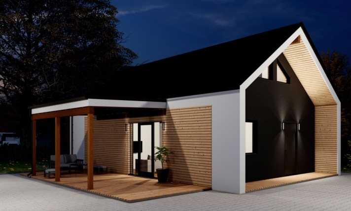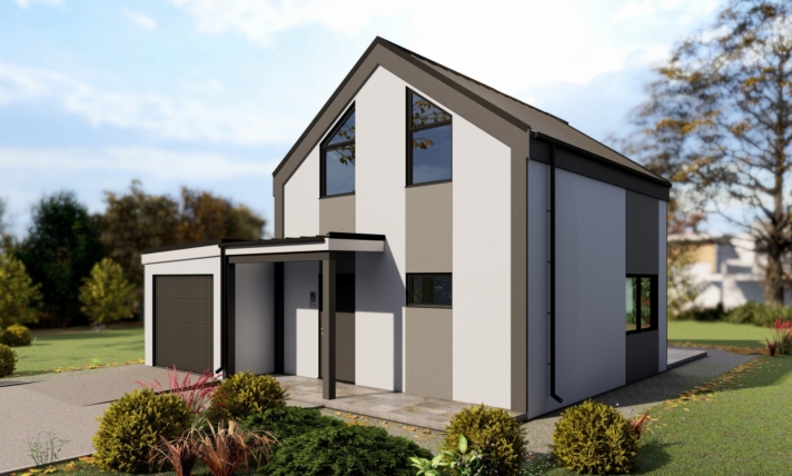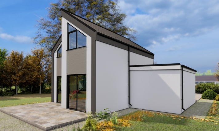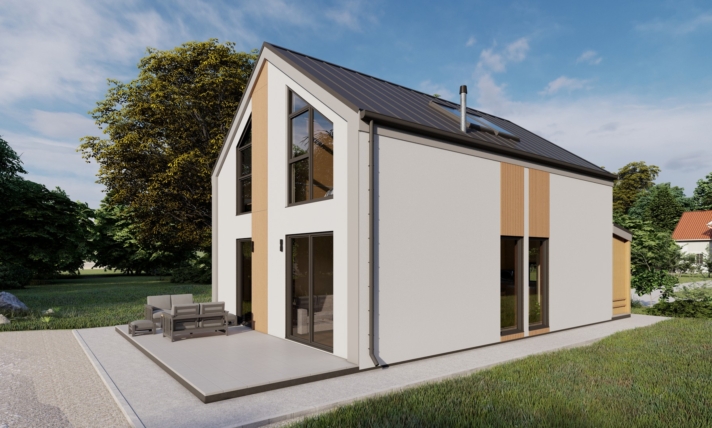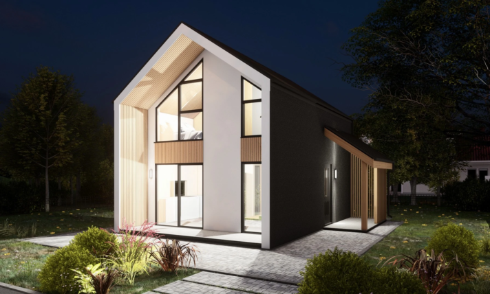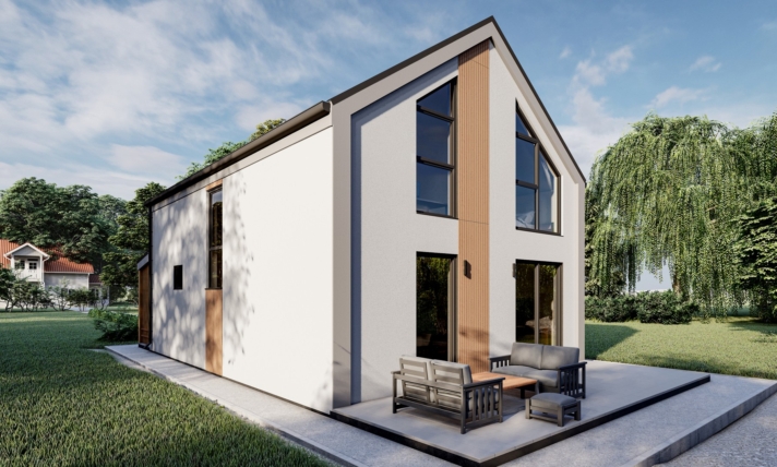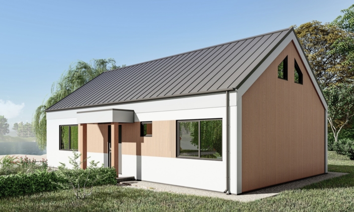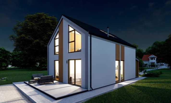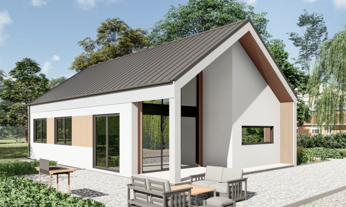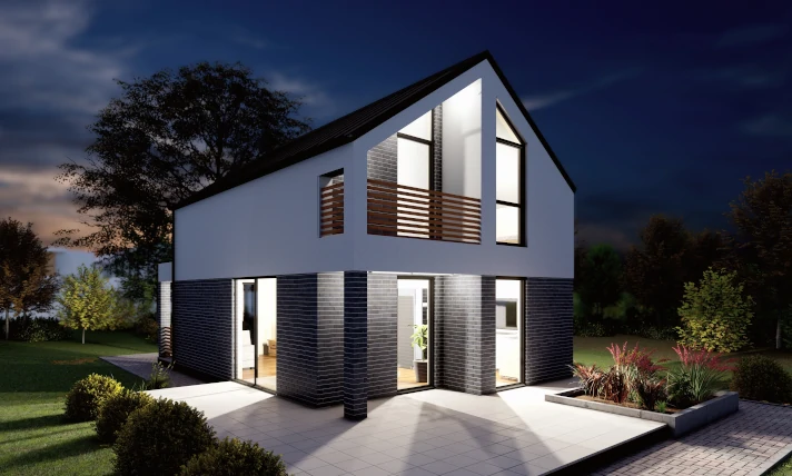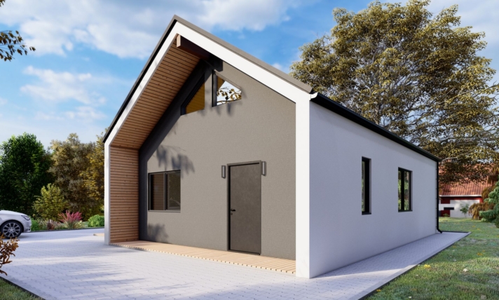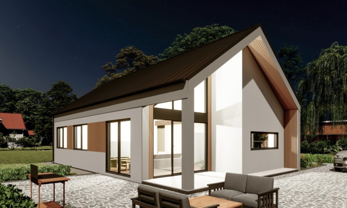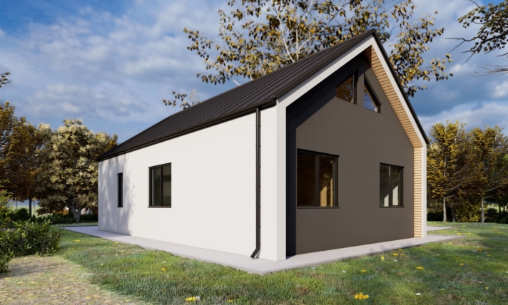 Z niesymetrycznym układem okien, pięknie doświetlonymi przestrzeniami, czterema sypialniami i przestronnym salonem z aneksem kuchennym i wyjściem na taras, ten dom o powierzchni 67.2 metrów kwadratowych zapewni idealne warunki do życia dla Ciebie i Twojej rodziny.