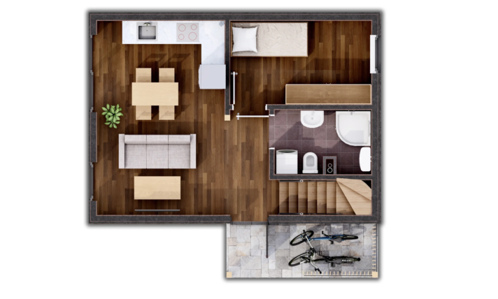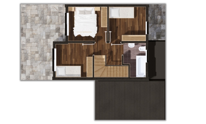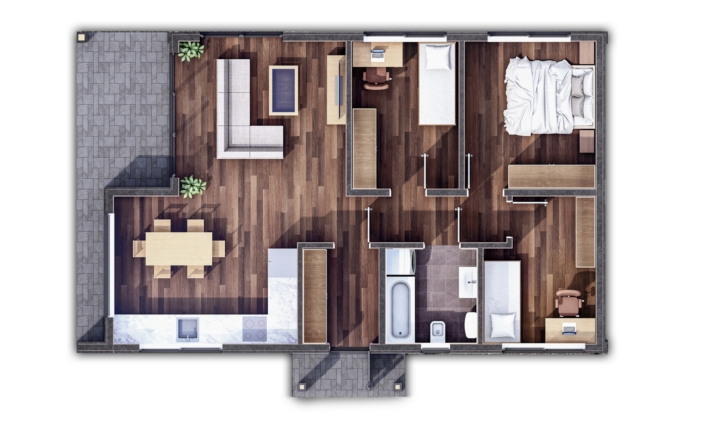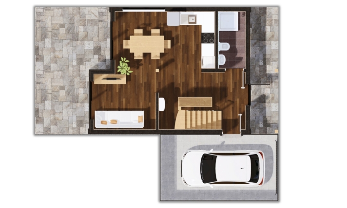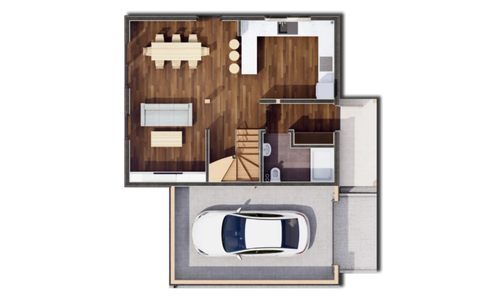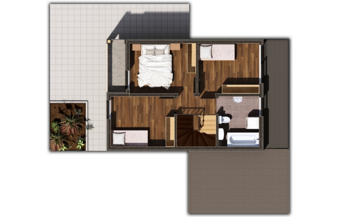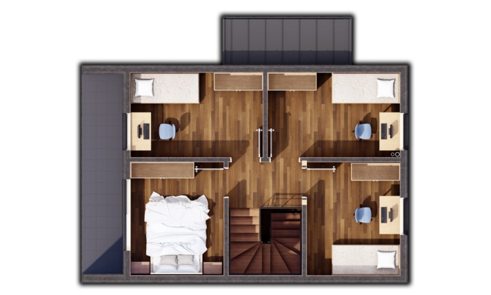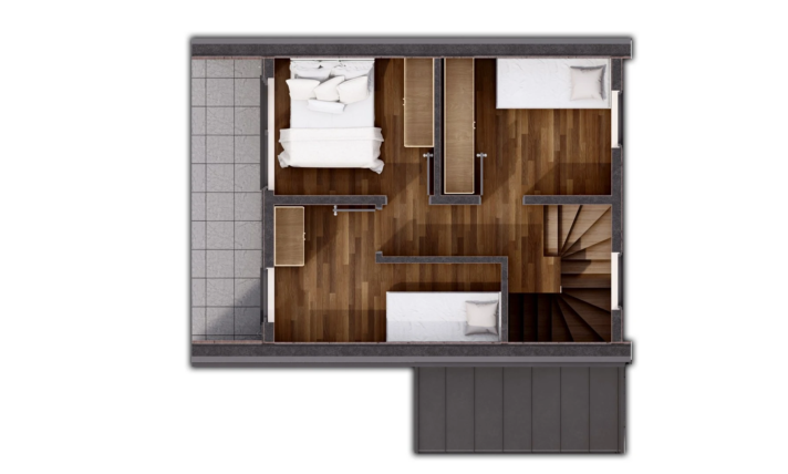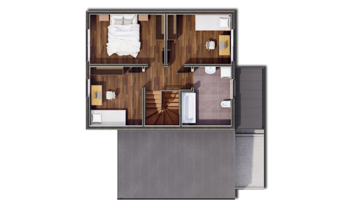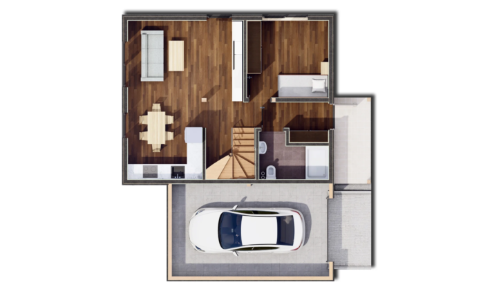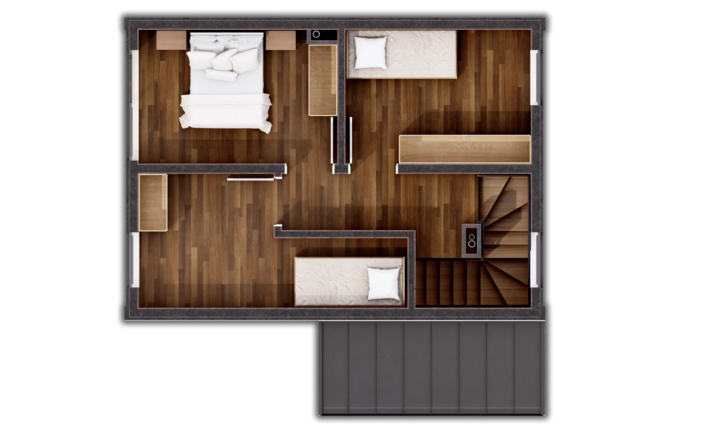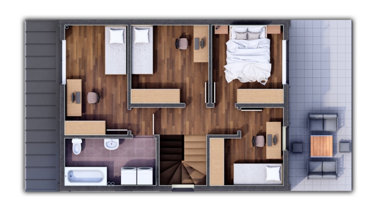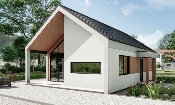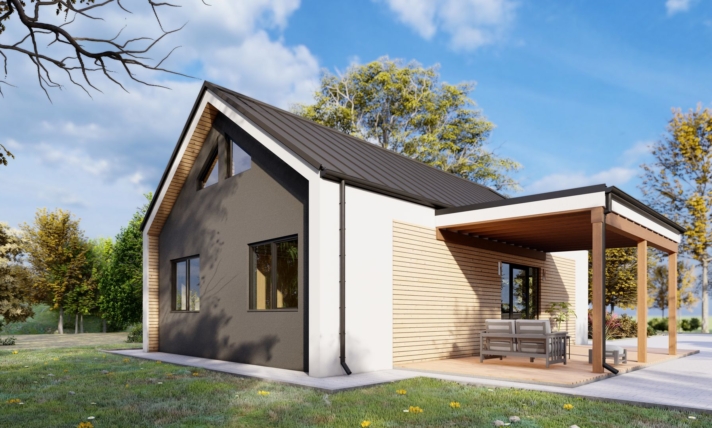 Z niesymetrycznym układem okien, pięknie doświetlonymi przestrzeniami, czterema sypialniami i przestronnym salonem z aneksem kuchennym i wyjściem na taras, ten dom o powierzchni 67.2 metrów kwadratowych zapewni idealne warunki do życia dla Ciebie i Twojej rodziny.