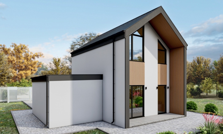 | Materiał elewacji | Tynk, imitacja drewna, blacha |